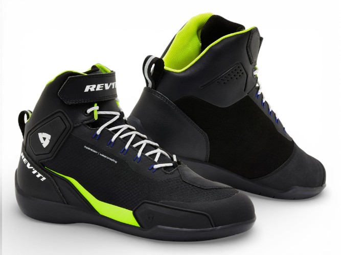 Scarpe REV’IT G-Force H2O impermeabili con protezioni certificate CE. Comfort, grip e stile sportivo urbano. Ideali per uso quotidiano e commuting sotto la pioggia.