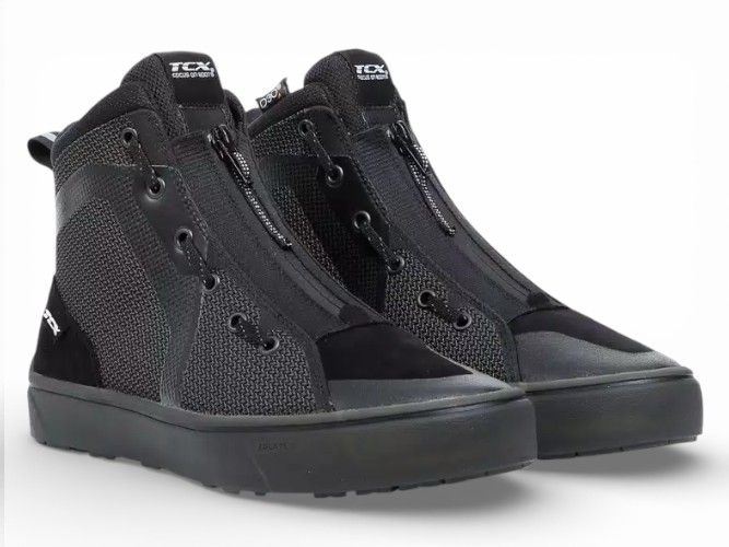 Scarpe TCX Ikasu Air estive in tessuto mesh traspirante. Protezioni su malleoli, suola antiscivolo e design urbano. Ideali per la guida quotidiana.